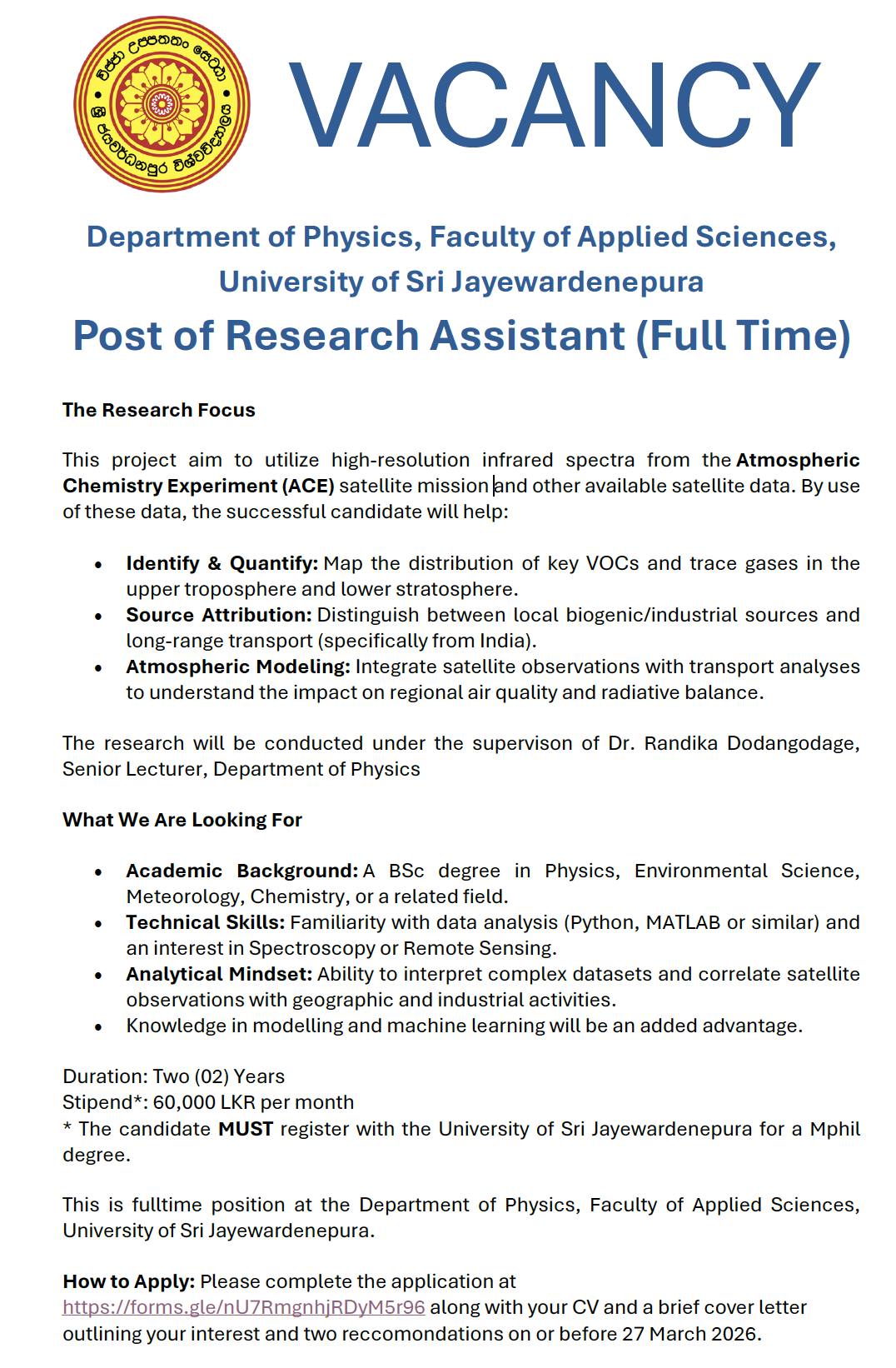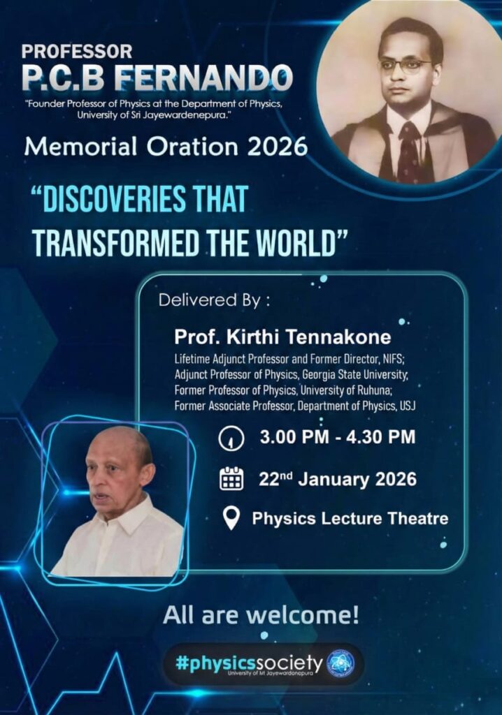The Department of Physics, University of Sri Jayewardenepura, organized a field visit to Apeksha Hospital for third-year undergraduates following the Medical Physics course. The visit was arranged by the Lecturer-in-Charge, Dr. S. Kandeepan, on 18 January 2026.