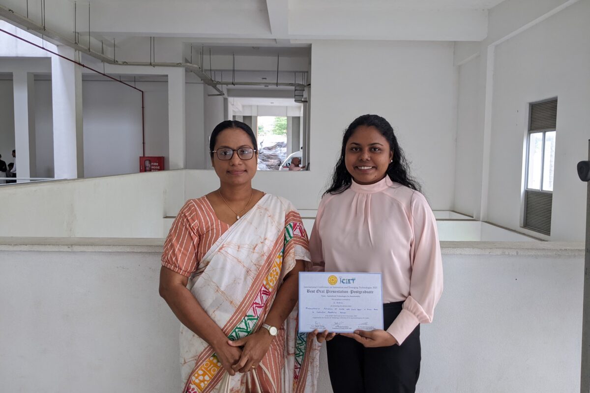The Department Is Proud to Announce That Ms. Sanduni Dabare, an MPhil Candidate Under the Supervision of Prof Imalka Munaweera, Has Been Awarded the Best Oral Presentation Award in the Postgraduate Session (Track: Agriculture Technologies for Sustainability) at the International Conference on Innovation and Emerging Technologies (ICIET) 2025. The Prestigious Conference Was Organized by the Faculty of Technology, University of Sri Jayewardenepura.