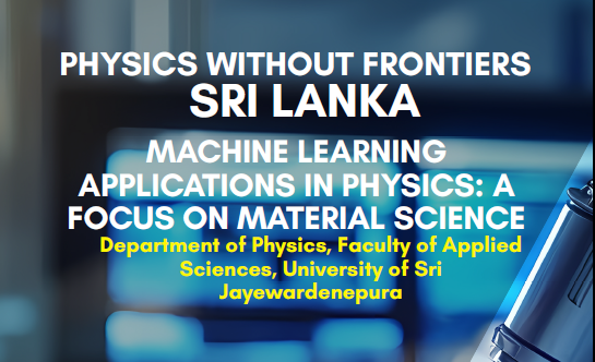 The five-day workshop conducted from 16th to 20th March 2026, under the International Centre for Theoretical Physics (ICTP) – Physics Without Frontiers (PWF) Sri Lanka program was successfully concluded in collaboration with the Department of Physics, University of Sri Jayewardenepura. The program addressed existing gaps in machine learning (ML) training within the fields of physics and materials science in Sri Lanka. It provided participants with practical ML expertise through a combination of lectures and hands-on sessions, while also fostering interdisciplinary collaboration.