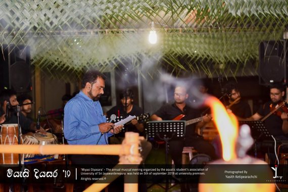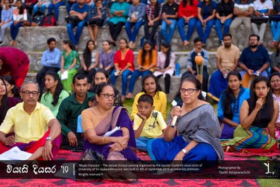 “මියැසි දියසර – ගී පැදුර, the annual musical evening organized by the Aquatic Students’ Association of the University of Sri Jayewardenepura was successfully held at the “Ehela wala” premises on 05th September 2019 for the third consecutive time with the participation of the lectures, non-academic staff and students of the university.