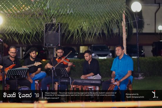 “මියැසි දියසර – ගී පැදුර, the annual musical evening organized by the Aquatic Students’ Association of the University of Sri Jayewardenepura was successfully held at the “Ehela wala” premises on 05th September 2019 for the third consecutive time with the participation of the lectures, non-academic staff and students of the university.
