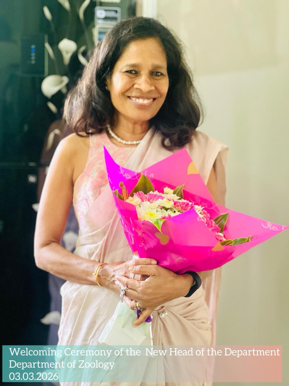 The Department of Zoology is pleased to announce the appointment of Senior Professor Dinithi Peiris as the new Head of the Department of Zoology. The Department of Zoology warmly welcomes Snr. Prof. Dinithi Peiris to her new role and looks forward to her leadership in guiding the department toward continued academic excellence and growth.